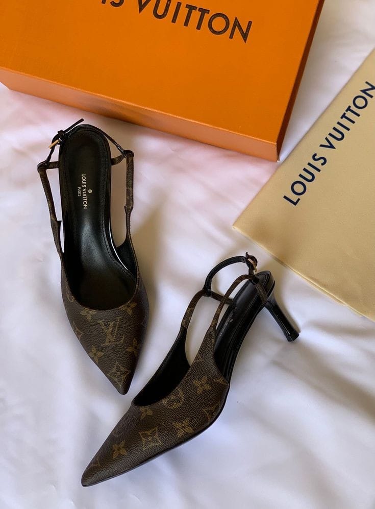 La décolleté aperta sul retro Chérie reinterpreta con femminilità un classico dello stile Louis Vuitton. Il modello, realizzato in tela Monogram e pelle di vitello verniciata nera, è ornato da una piccola fibbia dorata che regola il cinturino. La suola in pelle si distingue per un inserto in gomma che assicura una maggiore resistenza.